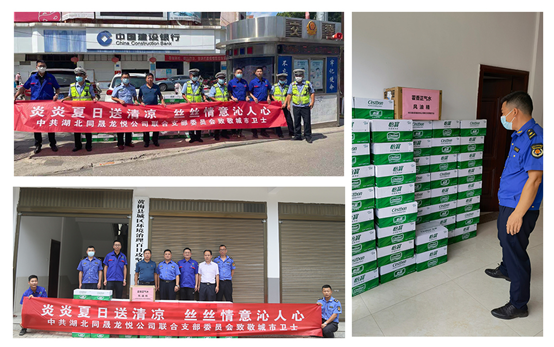 8月4日,湖北同晟龍悅公司聯(lián)合黨支部書記任永斌帶領(lǐng)職工代表,先后到黃梅縣交警大隊(duì)、城管執(zhí)法大隊(duì),為一線干警和城市守護(hù)者送去礦泉水、藿香正氣水等防暑用品,表達(dá)企業(yè)的慰問之情。 黃梅縣交警大隊(duì)陳建忠隊(duì)長(zhǎng)表示 ...