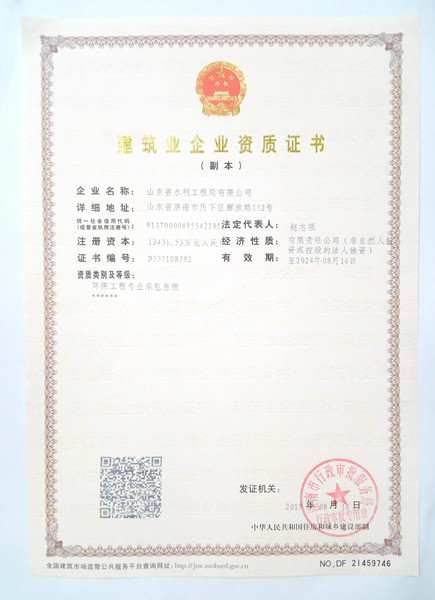 近日,經(jīng)濟南市行政審批服務(wù)局審核批準,公司成功取得了環(huán)保工程專業(yè)承包叁級資質(zhì)。 資質(zhì)是公司參與環(huán)保領(lǐng)域市場競爭的“準入證”,直接影響公司開拓環(huán)保領(lǐng)域業(yè)務(wù)。環(huán)保工程專業(yè)承包叁級資質(zhì)可承擔污染修復(fù)工程、生 ...