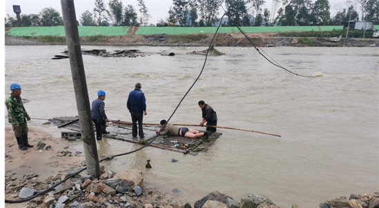 2021年4月25日上午8時,公司承建的通城縣城區(qū)河道生態(tài)治理PPP項目水利工程項目駐地一村民于雋水河劃乘竹筏涉水,因河水湍急,不慎落水,命懸一線,千鈞一發(fā)之際,項目部巡查人員發(fā)現(xiàn)后立即撥打110報警電話,并及時組織工地現(xiàn)場施工人員和當(dāng)?shù)卮迕駥β渌藛T進行營救。